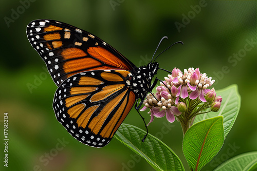 Majestic Monarch Butterfly Perched on Pink and White Milkweed Flowers