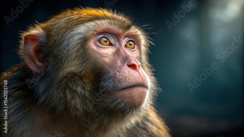 Majestic monkey gazing thoughtfully in a serene forest setting during the golden hour