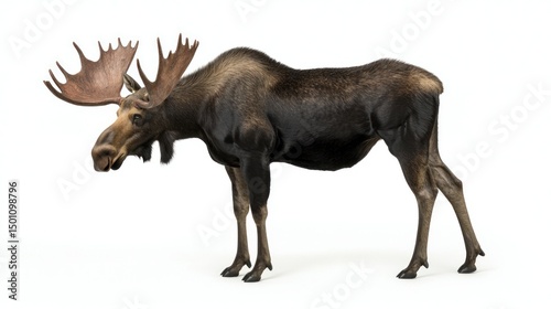 Majestic moose isolated on white, showcasing its imposing size and antlers