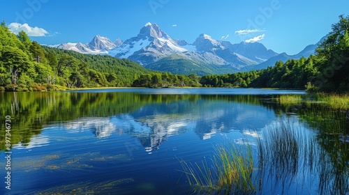 Majestic Mountain Lake Reflecting Snowcapped Peaks and Lush Forests