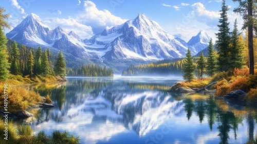 Majestic Mountain Lake Reflection in Autumn