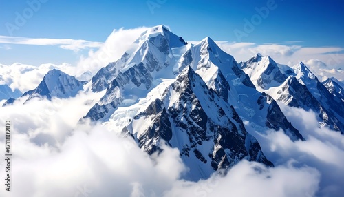 mountain, snow, peak, cloud, sky, landscape, snowy, high, cold, nature, huge, beauty, winter, altitude, cloudscape, majestic, aerial, sharp, white