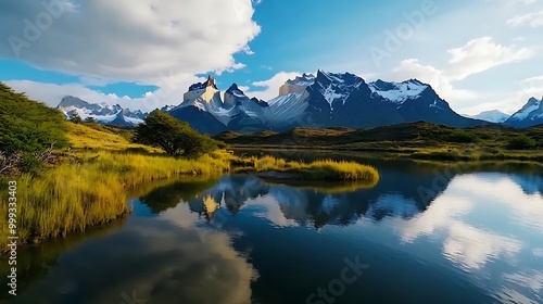 beautiful, patagonia, mountain, mountain, travel, majestic, still, landscape, wilderness, grass, blue, lake, chile, calm, south, picturesque, breathtaking, nature, cloud, inspiring, tree, capped, peaceful, clear, serene, hill, tranquil, water, meadow, stunning, range, peak, adventure, snow, sky, america, green, scenic, white