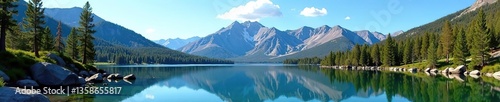 Majestic mountains and lush forests surrounding Lake Tahoe in California and Nevada, USA, clear water, mountains