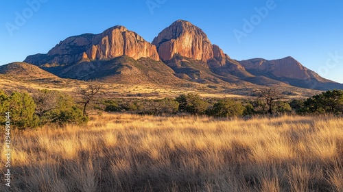 Majestic Mountains at Sunrise with Golden Grassland Foreground