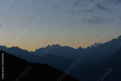 mountain, sunset, twilight, alpine, peak, natural, landscape, serene, peaceful, grand, majestic, nature, outdoors, sky, cloud, warm light, golden hour, dusk, beautiful, tranquil, high altitude, mountain chain, scenic, dramatic, remote, wilderness, natural beauty, pristine, huge, open space, summer evening, evening light, calm, quiet, calmness, serenity, breathtaking, view, horizon, natural wonder, travel, destination, atmosphere, light, glow