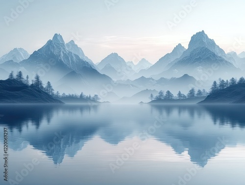 Majestic Mountains in Soft Pastel Colors with Serene Landscape and Natural Lighting