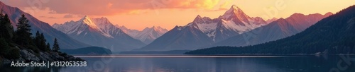 lake, nature, landscape, tranquil, calm, serene, mountain peak, sunset, peaceful