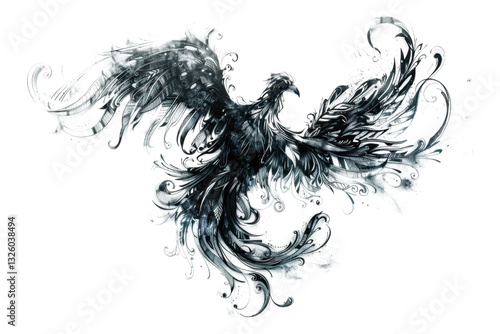 cut-out, tattoo, vignetting, outline, draft, phoenix, bird, mythical, legendary, powerful, art, design, wing, flying, symbol, graphic, black, white, ink, drawing, illustration, creative, abstract, style, pattern, ornate, intricate, detail, beautiful, spirit, rebirth, eternal, freedom, fantasy, vintage