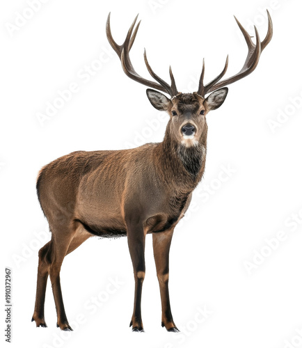 stag, antler, wildlife, winter, animal, snow, nature, majestic, wild, mammal, cervid, male, forest, outdoors, cold, season, portrait, full body, standing, hoof, white background, high key, wilderness, powerful, impressive, cervidae, ungulate, herbivore, strong, magnificent, alert, isolated, wild animal