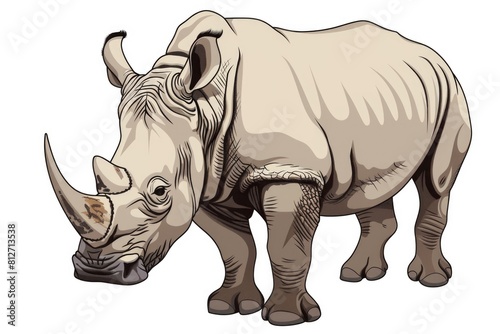 Majestic rhino against a plain white backdrop. Ideal for educational materials