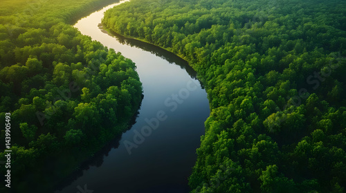 Majestic River Flowing Through Lush Green Forest - An Aerial View