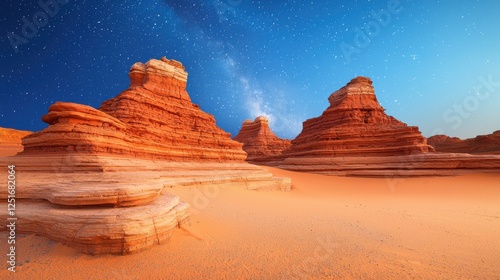 Majestic rock formations under a starry sky desert landscape nature photography tranquil environment wide-angle view awe-inspiring beauty