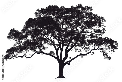 Majestic silhouette of a large tree at dusk isolated on transparent background