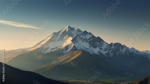 Majestic snow capped mountain peaks at sunset great for business backgrounds and presentations