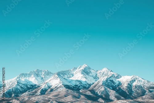 Majestic Snow-Capped Mountains Against Bright Blue Sky in Winter