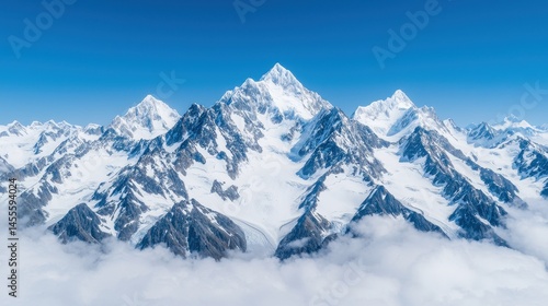 Majestic Snow-Capped Mountains Rising Above Clouds in Clear Sky