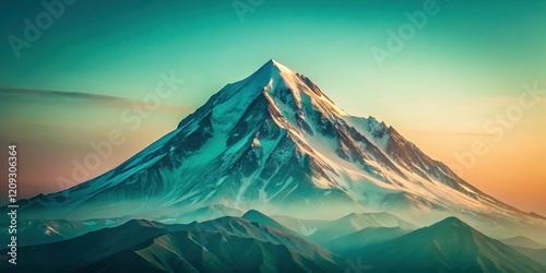 Majestic Snow-Capped Peak at Sunrise, a Serene Mountain Landscape with Misty Valleys