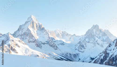 Majestic snow-covered mountains under clear winter sky, serene beauty