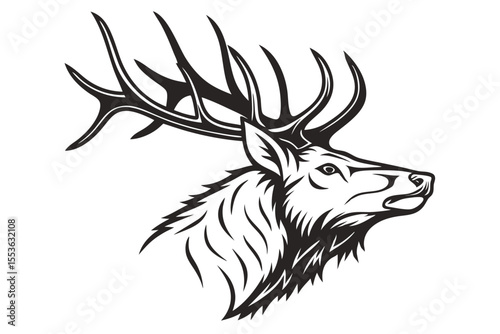 Majestic stag head with striking antlers presents a bold black and white portrait