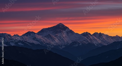 mountain, sunset, snow, range, peak, nature, landscape, sky, alpine, scenic, view, panorama, horizon, twilight, dawn, cloud, colours, orange, red, purple, blue, hill, ridge, summit, vista, scenery, photo, travel, adventure, exploration, serenity, calm, peace, calmness, majesty, beauty, wonder, awesome, breathtaking