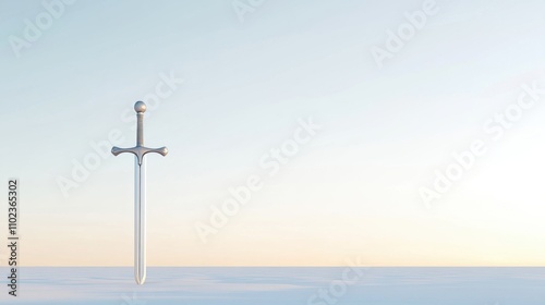 sword, desert, dawn, tranquil, landscape, solitary, horizon, serene, mysterious, timeless, upright, majestic, solitude, calm, peaceful, empty, stillness, sunrise, expansive, minimal, open, huge, quiet, simplicity, metallic, barren, elegance, lone, atmospheric, morning, light, shadow, soft, aethereal, warm, glow