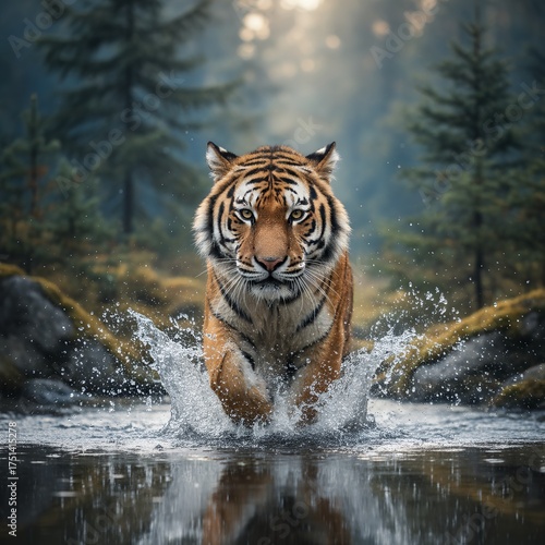 tiger, wildlife, animal, nature, forest, water, splash, movement, powerful, predator, endangered, wild, mammal, hunting, tracking, fierce, majestic, dynamic, action, endangered species, big cat, jungle, wilderness, aquatic, stream, river, motion, outdoors, raw, intense, strong, bold, instinct, chase, escape, survival, strength, wild animal, tropical, striped, orange, black, yellow eyes