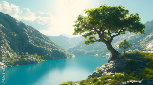 Majestic Tree Overlooking Tranquil Mountain Lake