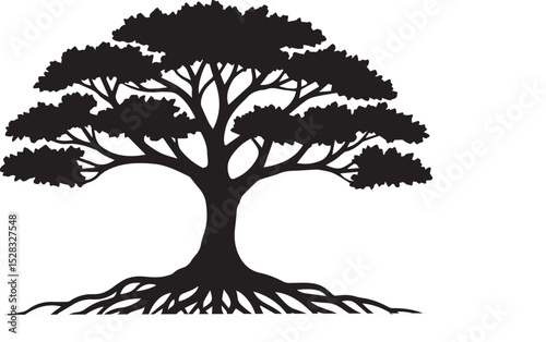 Majestic Tree Silhouette with Roots Vector for Nature Illustrations