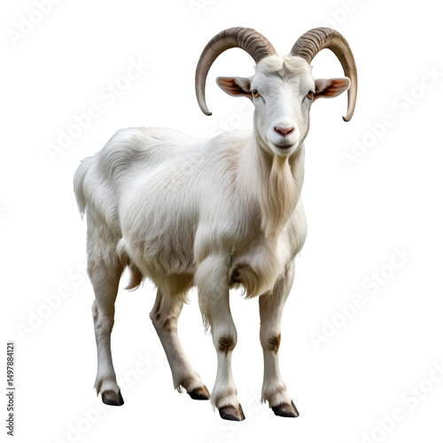 Majestic white goat standing isolated transparent background farm animal