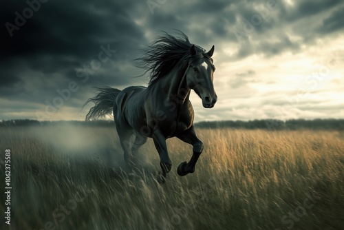 Majestic wild mustang galloping freely across the vast open prairie