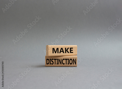 Make distinction symbol. Concept words make distinction on wooden blocks. Beautiful grey background. Business and make distinction concept. Copy space