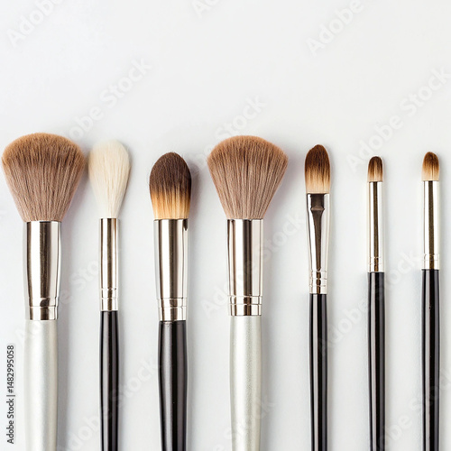 Makeup brush set with bristles on white background