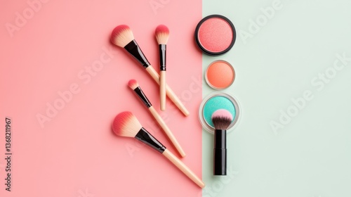 make-up, brush, cosmetic, reddening, eyeshadow, beauty, tool, vibrant, colours, skincare, palette, pink, green, application, round, soft, blending, artist, feminine, aesthetic, fashion, wellness, professional, everyday, creative, studio, modern, minimalistic, colourful, product, presentation, trendy, decorative, beauty product, clean, organised, vanity, design, style, lifestyle