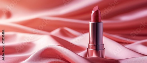 Makeup Product Advertisement. Close-Up of Lipstick on a Pink Background.