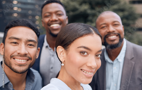 Making memories together. Shot of a group of businesspeople standing outside together.