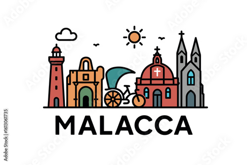 malacca, skyline, landmark, building, architecture, malaysia, city, historical building, church, jesus christ, fortress, street, structure, dome, piazza, urban, silhouette, travel, destination, culture, scenery, panorama, vista, tour tourism, heritage, region, location, art, municipal, scene, design, icon, facades, illustration, land