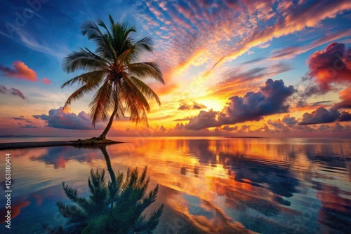 maldives, sunset, double exposure, photo, tropical, paradise, ocean, beach, island, palm tree, sun, sky, luxury, travel, vacation, holiday, relaxation, escape, serenity, peace, calm, beautiful, stunning, picturesque, idylli, romantic, dreamy, vibrant, warm, soft light, hi-res, detailed, photorealistic, nature, scenery, landscape, tour tourism, beach vacation, ocean view