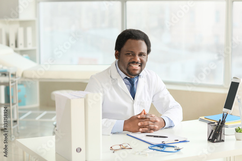 Male African-American doctor in clinic