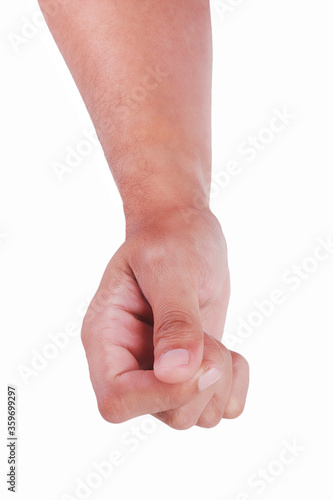 Male asian hand gestures isolated over the white background. Hand Grab Thing with fingers Action.