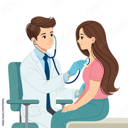 male doctor examining female patient with stethoscope. medicine vector illustration, vector cartoon style