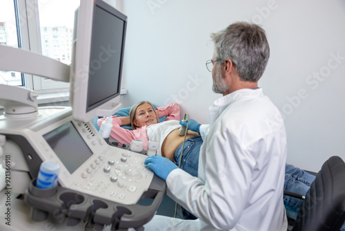belly, check up, clinic, doctor, doctors office, expectation, health care, hospital, indoor, investigation, lifestyle, lying, medical equipment, medicine, professional, sensor, man, mature, patient, caucasian, abdominal, diagnostic