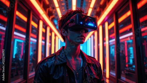 virtual, reality, technology, futuristic, neon, gamer, digital, youth, male, stylish, headset, urban, high-coloured, light, exploration, gaming, modern, lifestyle, profile, innovation, electronic, entertainment, bright, colourful, cyber, night, design, trend, cool