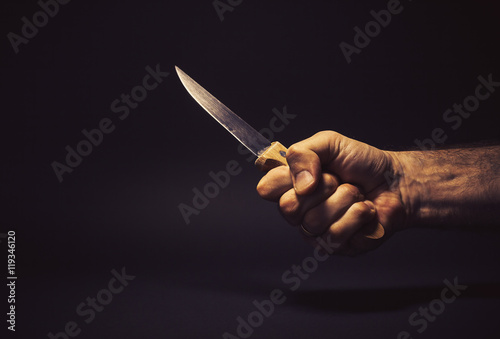 knife, kitchen, dagger, weapon, tool, equipment, horror, scene, moment, dangerous, sharp, metal, steel, vintage, retro, accessory, thrill, dramatic, man, male, hand, arm, human, body, adult, hairy, strong, muscle, finger, tight, holding, giving, showing, symbolic, metaphor, object, thumb, concept, conceptual, simple, studio, illumination, dark, shape, presenting, act, bare