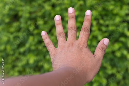 Male hand stop sign. Concept take care of the earth.