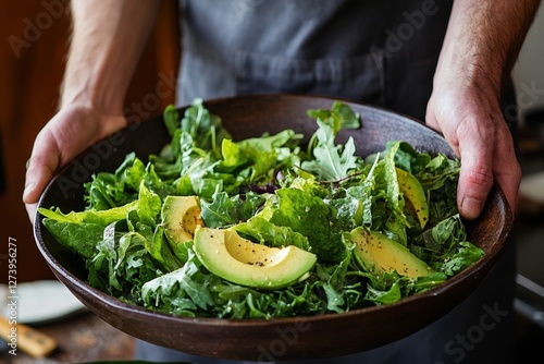 male, hand, salad, avocado, bowl, fresh, green, healthy, vegetable, lettuce, kale, spinach, arugula, dressing, pepper, herb, diet, nourishment, organic, vegetarian, vegan, culinary, cookery, food, plate, dish, epicure, meal, leaf, garden, raw, nature, simple, clean, wholesome, kitchen, preparation, mixing, serving, taste, delicious, natural, lifestyle, wellness, summer, spring, seasonal