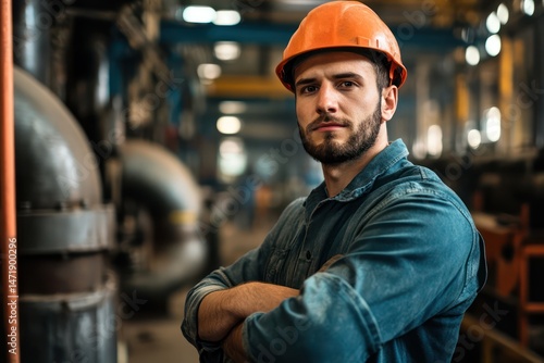 man, factory, men at work, helmet, industrial, uniform, equipment, portrait, engineer, production, machinery, technician, industry, male, technology, plant, labor, job, modern, career, construction, facility, professional, manufacturing, machine, training, hard hat, operator, gear, engineering, workplace, automation