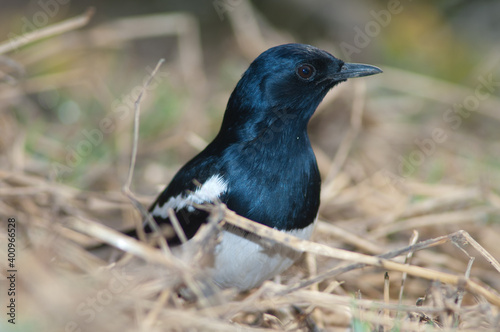 Male Oriental magpie robin Copsychus saularis. Keoladeo Ghana National Park. Bharatpur. Rajasthan. India.