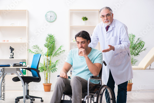specialist, care, check-up, clinic, doctor, health, health care, hospital, medicals, medicine, physician, practitioner, recovery, treatment, disease, diagnostic, case, disease, working, examining, check-up, healer, job, patient, man, discussing, explaining, accident, broken, bone, leg, trauma, injury, recovering, wheelchair, rehabilitation, invalid, disabled, wheel, chair, disability, injured, handicap, handicapped, pain, sad, unhappy, frustrated, depressed, stress