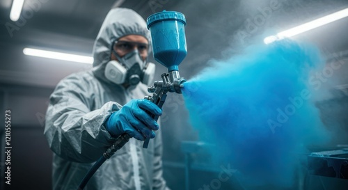 craftsmanship, occupation, uniform, coating, industrial, chemical, application, maintenance, labor, spray, gear, detailed, industry, precise, precaution, task, equipment, process, male, controlled, paint, machinery, manufacturing, safety, factory, focused, environment, caucasian, respirator, blue, skill, engineering, facility, operation, technician, workplace, handling, workshop, job, professional, sprayed, protective, adult, technology, expertise
